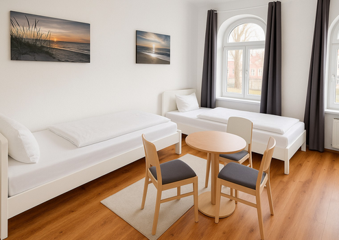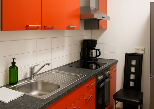 Die Wohnung bietet mit insgesamt 5 oder 6 Betten sowie zusätzlicher Couch ideale Voraussetzungen für Firmen, Projektteams, Monteure oder Wohngemeinschaften auf Zeit.