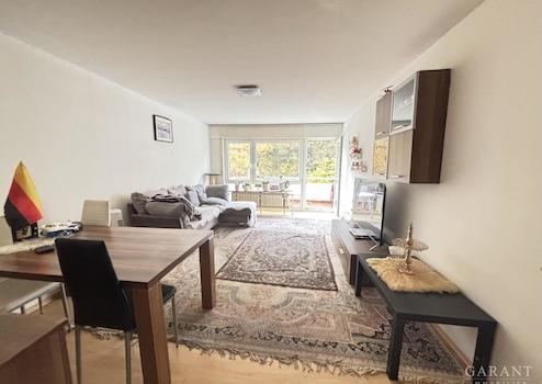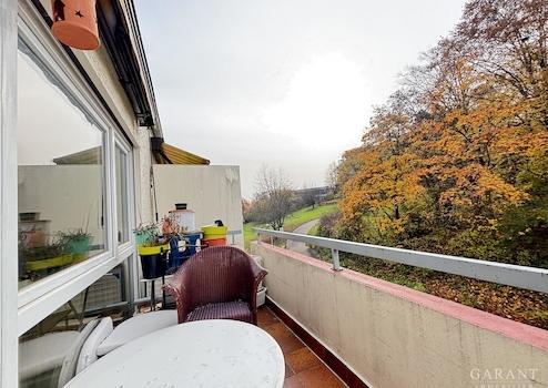 Die Wohnung hat eine gute Raumaufteilung, zwei geräumige Schlafzimmer und einen sonnigen Balkon mit Blick ins Grüne.