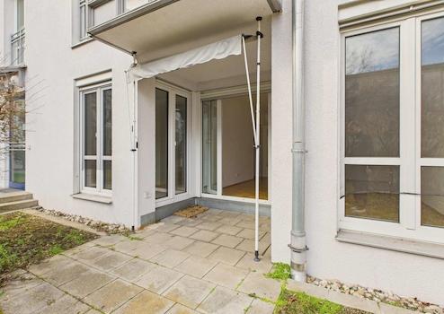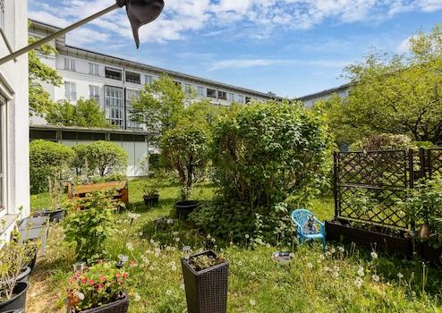 Ein echtes Highlight dieser Wohnung ist die angrenzende Terrasse mit sonniger Süd-Ost-Ausrichtung – direkt zugänglich sowohl von der stilvollen Küche als auch vom großzügigen Wohnzimmer. Von hier aus eröffnet sich Ihnen der Zugang ins Grüne. Genießen Sie erholsame Stunden mit Blick ins herrlich begrünte Innenhof-Idyll – eine grüne Oase der Ruhe mitten in der Stadt. Ein Rückzugsort, der seinesgleichen sucht.