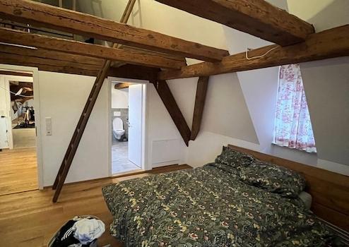 Dieses außergewöhnliche Dachgeschoss-Loft vereint historischen Charme mit großzügigem Raumgefühl. Die sichtbar erhaltenen Fachwerkbalken verleihen der Wohnung eine warme, authentische Atmosphäre und unterstreichen den einzigartigen Charakter des Objekts. Die beeindruckende Deckenhöhe schafft ein offenes, luftiges Wohngefühl und lässt viel Raum für individuelle Gestaltungsmöglichkeiten.