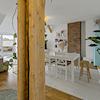 - großes, lichtdurchflutetes Wohnzimmer mit sichtbaren Holzbalken