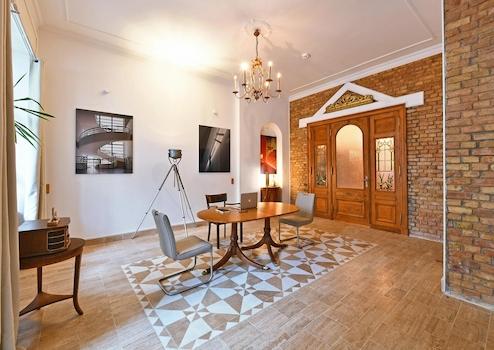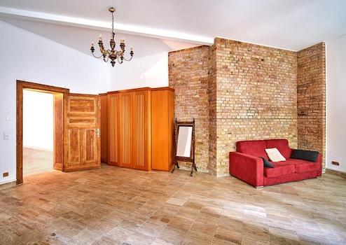 • Sie bietet drei/vier geräumige Loft-Räume mit hohen Decken (ca. 3,70 m), händisch freigelegte Ziegelwände und Böden aus italienischem Marmor und Travertin.