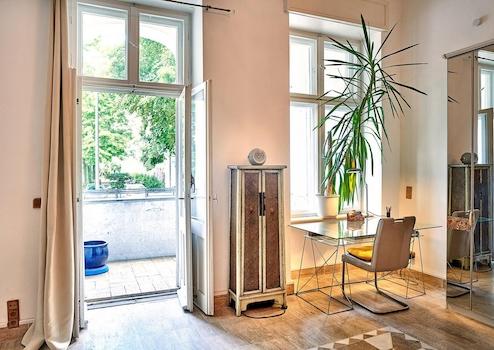 • Die Wohnung befindet sich nahe dem Adenauerplatz, nur 90 m vom Kurfürstendamm entfernt, in einer ruhigen Seitenstraße.