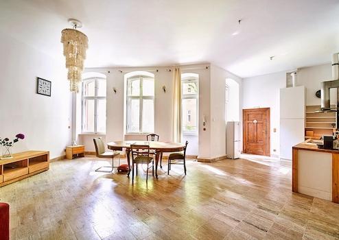 • Die Altbauwohnung im Hochparterre eines Gründerzeithauses von 1906 hat eine Wohnfläche von ca. 167 m2 und wurde zwischen 2010 und 2013 umfassend saniert.