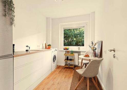 Diese sorgfältig modernisierte 2-Zimmer-Wohnung überzeugt mit einer durchdachten Raumaufteilung, viel natürlichem Licht und einer begehrten Lage direkt am Eilbekkanal.