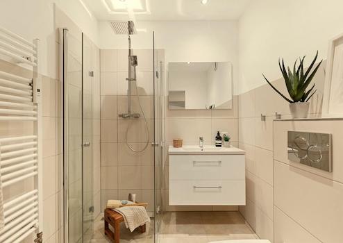 - Modernes Duschbad mit bodentiefer Dusche und hochwertigen Armaturen