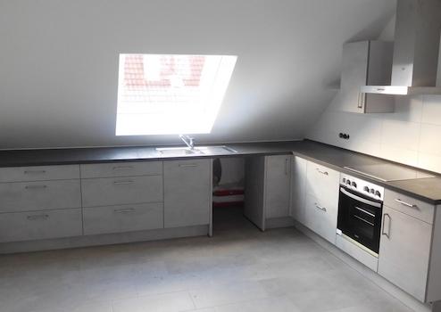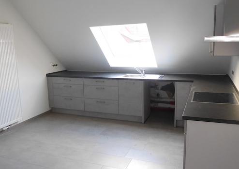 neue Einbauküche in Betonoptik ( ohne Kühlschrank und Spülmaschine )