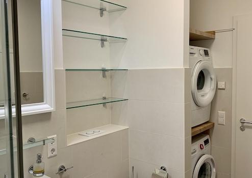 - Waschmaschine und Wärmepumpen-Trockner im Bad,