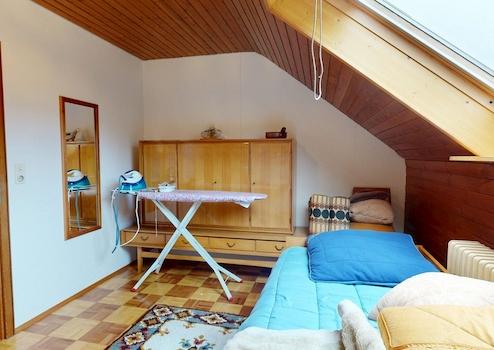 Das Dachgeschoss bietet zusätzlichen Wohnraum für die ganze Familie. Hier befinden sich zwei Schlafzimmer, ein kleines Büro sowie ein weiteres WC. Eines der Schlafzimmer verfügt über eine angrenzende Ankleide und bietet damit besonderen Komfort. Zudem hat eines der Schlafzimmer Zugang zu einem Balkon, der zum Entspannen einlädt und einen schönen Ausblick ermöglicht.