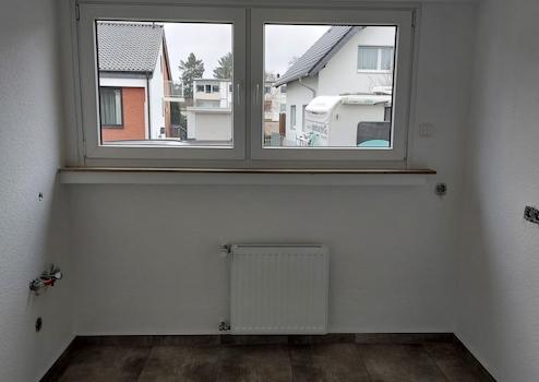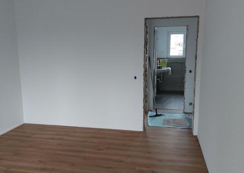 Frisch saniert: Neue Böden (Fliesen und Vinyl), komplett neues Bad, neue Türen (fehlen noch), neue elektrische Rollläden, gedämmte Rollladenkästen, kleiner Garten zur alleinigen Nutzung. Weiterhin gehören ein Kellerraum und eine Garage zur Wohnung.