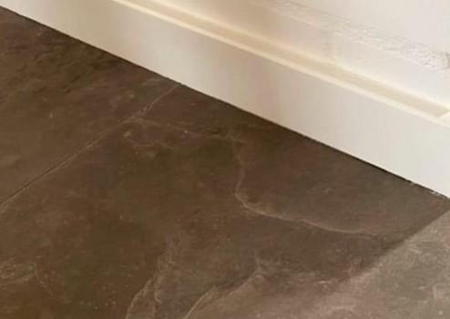 Im gesamten Erdgeschoss wurden großformatige, dunkelgraue Fliesen aus Italien verlegt.