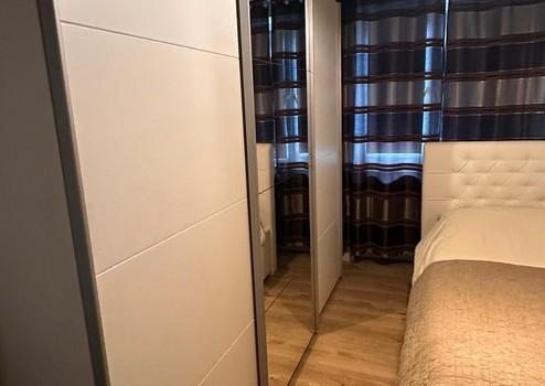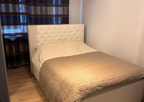 Schlafzimmer mit Bett + Schrank