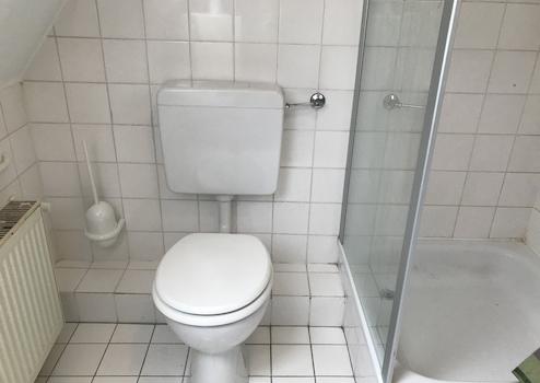 Duschbad, Einbauküche, Laminat, Fliesen