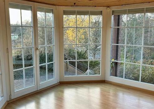 Das Haus empfängt Sie mit einem beeindruckenden, großzügigen Flureingang, der Ihnen direkten Zugang zu den wichtigsten Bereichen des Erdgeschosses verschafft. Vom Flur aus gelangen Sie in das geräumige Wohnzimmer, welches durch seine lichtdurchfluteten Fensterfronten und den charmanten Erker einen besonders einladenden Eindruck hinterlässt. Der offene Kamin sorgt in den kalten Wintermonaten für eine gemütliche und warme Atmosphäre. Besonders hervorzuheben ist auch die elegante Flügeltür, die das Wohnzimmer noch zusätzlich aufwertet.