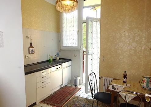 Von hohen Decken mit einem sehr gut erhaltenen Deckenstuck bis zum Fischgrätparkett bietet diese ca. 101m² Wohnung wesentliche Elemente, die den Charm einer klassischen Altbauwohnung widerspiegeln. Die in den 1990ern modernisierte Wohnung verfügt über einen großzügig geschnittenen Eingangsbereich, 2 Schlafzimmer, 1 Wohn-/Essbereich, 1 Küche mit Speisekammer und Zugang zum Balkon, 1 Tageslichtbad mit Dusche, Doppelwaschbecken und Waschmaschinenanschluss sowie ein separates WC. Wohnzimmer und die beiden Schlafzimmer sind mit solidem Parkett ausgestattet. Zudem verfügt der Wohn-/Essbereich auch über einen Erker. Die Wohn- und Schlafräume sind alle mit sehr schönen Stuckdecken versehen. Der alte Kaminkachelofen ist derzeit außer Betrieb (sehr dekorativ). In der Küche befindet sich derzeit eine ältere und einfache, funktionierende Küchenzeile. Weiteren zusätzlichen Stauraum bietet die kleine Speisekammer mit Fenster. Von der Küche aus haben Sie Zugang auf einen nach Nordwest ausgerichteten Balkon auf dem es sich im Sommer angenehm verweilen lässt. Das Tageslichtbad ist mit zwei Waschbecken und einer Dusche ausgestattet und hat zudem einen Waschmaschinenanschluss. Ein separates WC mit Fenster ist vom Flur aus zugänglich. Eingangsbereich, Küche und Sanitärräume verfügen über einen Fliesenboden.