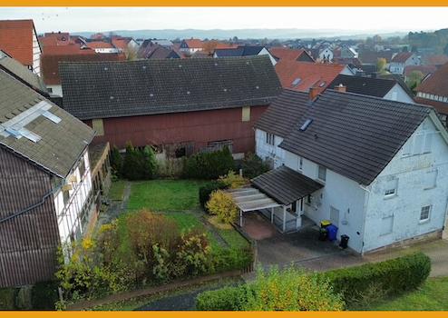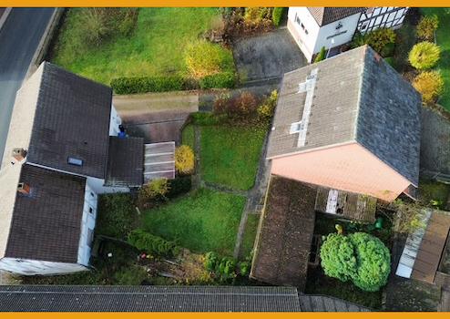 Dieses Objekt besteht überwiegend aus einem 1993 erbauten Massivbau und einem direkt nebenan stehenden älteren Fachwerkhaus. Im Erdgeschoss des "Neubaus" finden Sie ein Esszimmer, ein Wohnzimmer, eine Küche mit angrenzender Speisekammer und ein helles Gäste-WC. Das Obergeschoss gliedert sich auf in zwei Schlafzimmer und ein Badezimmer mit Wanne und Dusche. Zudem ist das Dachgeschoss ausbaufähig. Die Waschküche, ein weiteres Badezimmer mit Dusche und WC und einen Abstellraum, der Ihnen Lagermöglichkeiten bietet, sind im Keller vorhanden. Für den PKW stehen ein Carport und ein Außenstellplatz zur Verfügung. Die angrenzende, renovierungsbedürftige Scheune bietet ebenfalls ausreichend Platz. Das Fachwerkgebäude wurde längere Zeit nicht bewohnt und ist aktuell nur als Lagerfläche oder wieder zum Ausbau nutzbar, daher ist diese Fläche nicht in den o.g. Angaben berücksichtigt.