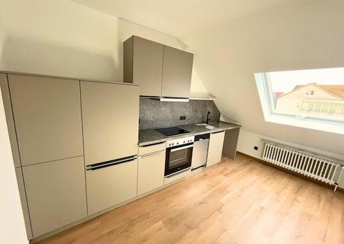 Im Herzen von Goldbach und dennoch angenehm ruhig gelegen, präsentiert sich diese vollständig renovierte 2-Zimmer-Dachgeschosswohnung als echtes Wohnhighlight. Die Kombination aus hochwertigem, stilvoll gestaltetem Bad und einer neuen, modernen Einbauküche verleiht der Wohnung ein exklusives Ambiente. Helle Räume, ein durchdachter Grundriss und der charmante Dachgeschosscharakter schaffen ein einladendes Wohngefühl. Zusätzlich bietet ein mitnutzbarer Teil des Gartens Raum für Entspannung im Freien – ein seltenes Extra in zentraler Lage.