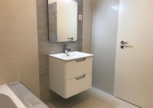 Schlafzimmer Laminatboden, alle anderen Räume sind mit Fliesenboden ausgestattet. Auch diese Wohnung verfügt über Fußbodenheizung.