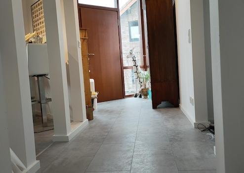 Diele, Küchenbereich und Bad ist Fliesenboden verlegt.