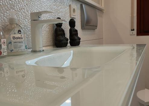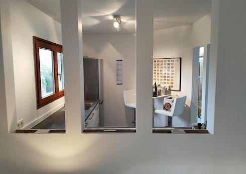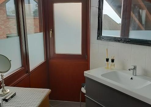 Das geräumige Bad modernisiert (2015) verfügt über sehr große Fensterfront