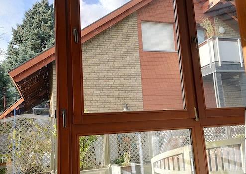 Wintergarten mit direktem Zugang zu eigenem Garten und großzügiger Terrasse mit ca. 21 m². Im Wintergarten/Wohnraum kann ein Kaminofen eingebaut werden. Zwei Kaminzüge sind vorhanden.