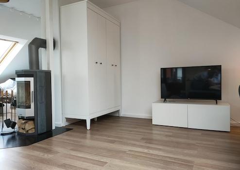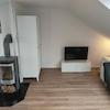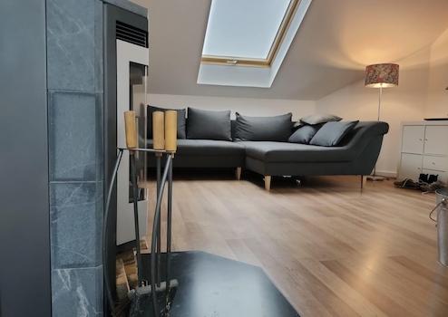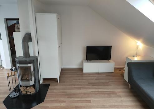 Im Wohn-Essbereich befindet sich ein Kaminofen