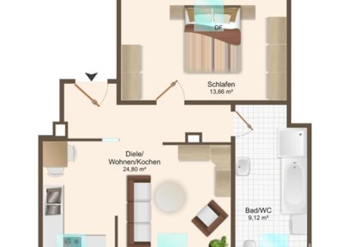 Gemütliche 2 Zimmer-Wohnung im Dachgeschoss, mit Wanne & Dusche