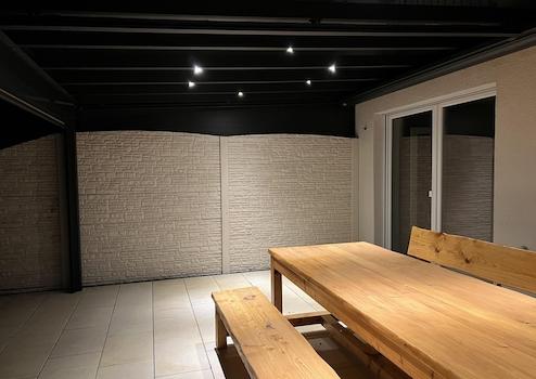 • Extras: Terrassenüberdachung mit Voll-Beschattung & Lichtsystem