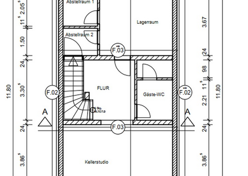 Untergeschoss: Voll unterkellert; aktuell als Studio ausgebaut (z.B. für Kleingewerbe wie Kosmetik oder Hobby nutzbar).