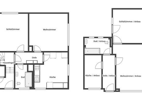 - Haupthaus voll unterkellert, Bungalow ca. 50 %