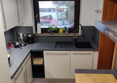 /Separate Küche mit moderner Einbauküche (inkl. Geräte) und