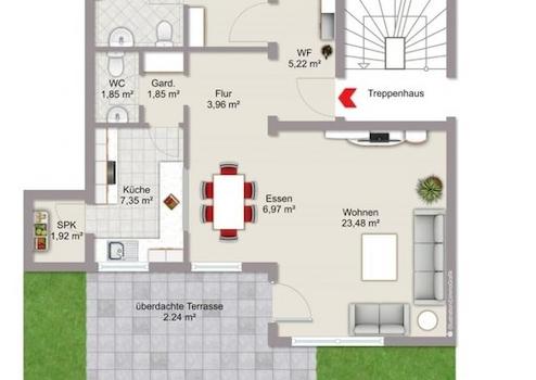 Sonnige 3,5-Zimmer-Wohnung mit großer Terrasse und eigenem Garten