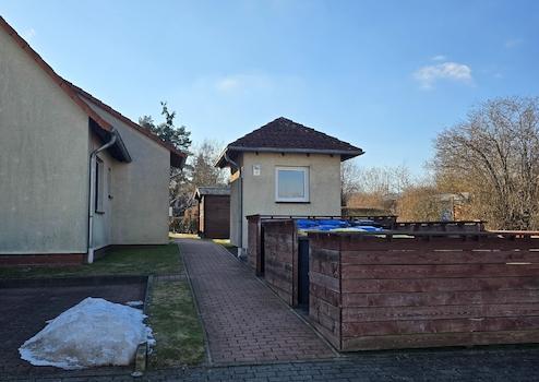 Darüber hinaus haben Sie einen Gartenanteil mit Gerätehäuschen.