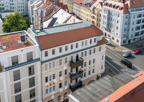 Das Mehrfamilienhaus liegt in einer urbanen Wohnlage im Stadtteil Möckern-Süd, gleich angrenzend an den gutbürgerlichen Stadtteil Gohlis. Laut offiziellem Wohnlagenatlas der Stadt Leipzig handelt sich um eine gute bzw. gehobene Wohnlage.