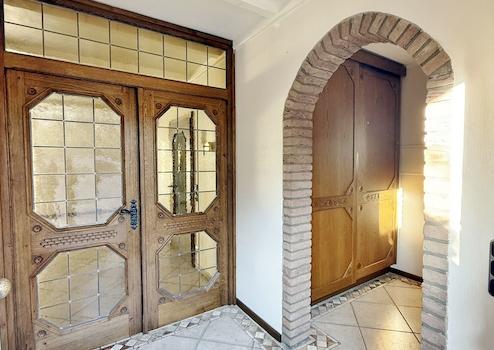 Bereits beim Betreten des Hauses empfängt Sie ein großzügiger Windfang mit Garderobenbereich und Gäste-WC mit Tageslicht aus dem Baujahr. Von hier gelangen Sie in die weitläufige Diele mit Kamin, der an kühleren Tagen für eine behagliche Atmosphäre sorgt und Platz für eine gemütliche Leseecke bietet.
