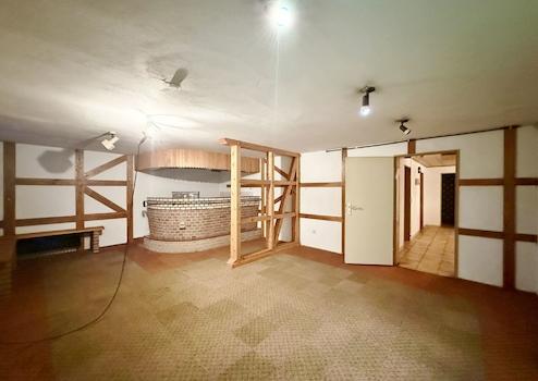Der Vollkeller mit Außenzugang rundet das Raumangebot ab. Neben zwei Lagerräumen finden Sie hier einen Heizungsraum mit angrenzendem weiteren Raum, einen Partyraum sowie eine Waschküche mit Retro-Küche, Dusche und direktem Gartenzugang – ideal nach getaner Gartenarbeit.