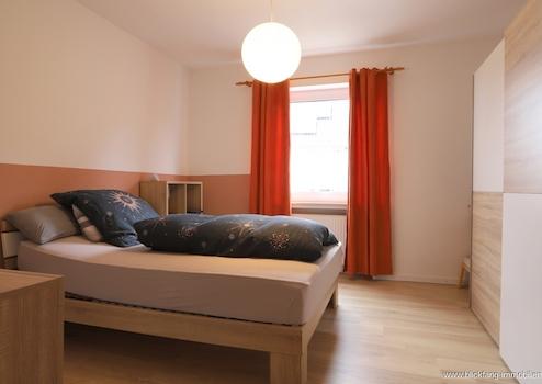 Die Einliegerwohnung hat ca. 59 qm Wohnfläche und verfügt über ein Wohnzimmer mit eigener Terrasse, ein Schlafzimmer, eine Küche inkl. EBK, ein Badezimmer, sowie 2 x Stellplätze.