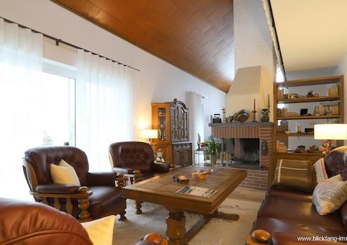 Den Mittelpunkt dieses Einfamilienhauses mit ca. 148 qm Wohnfl., bildet das schön helle Wohn- Esszimmer mit offenem Kamin und einer imposanten Raumhöhe.
