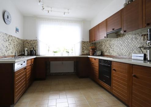 Die geräumige Küche bietet Platz für eine 3-zeilige Kücheneinrichtung.