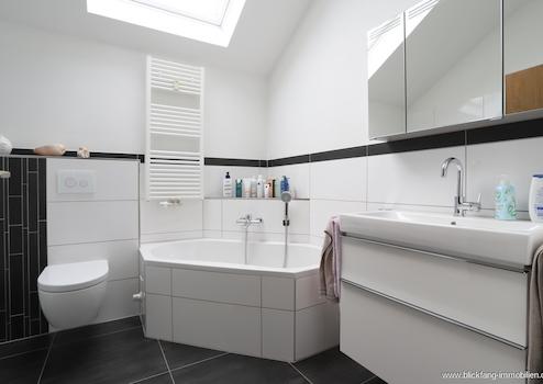 Über eine Stahltreppe mit Holzstufen gelangen Sie in das OG, in welchem sich 3 Schlafräume, ein modernes Wannen- und Duschbad und ein sep. Gäste-WC befinden. Das Hauptbadezimmer wurde 2013 aufwendig saniert und verfügt über eine barrierefreie Echtglasdusche, ein Waschbecken nebst beleuchtetem Spiegelschrank und einem Unterbauschrank, sowie ein Bidet, ein Hänge-WC, einer Fußbodenheizung und einer sep. Handtuchheizung. Ein Dachfenster kann bequem per Fernbedienung elektronisch geöffnet werden und sorgt für Tageslicht und sehr gute Belüftungsmöglichkeiten.