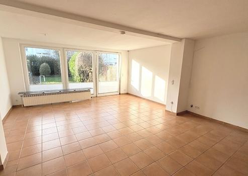 Das unterkellerte Haus steht auf einem 208 m² großen Grundstück. Der pflegeleicht angelegte und ideal nach Südwesten ausgerichtete Garten lädt nach Feierabend oder am Wochenende zum Entspannen ein. Die große Fensterfront zwischen Wohn-/Esszimmer und Terrasse bzw. Garten sorgt für viel Licht und Gemütlichkeit. Neben dem großzügigen Wohn-/Esszimmer (ca. 39 m²) gibt es im Erdgeschoss nur noch einen weiteren Raum, nämlich die Küche.