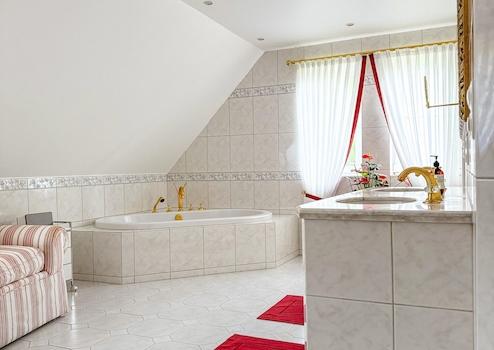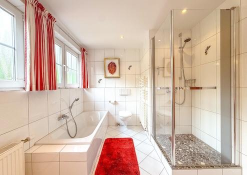 - Elternbad mit Dusche, Badewanne, Doppelwachbecken, Bidet und WC