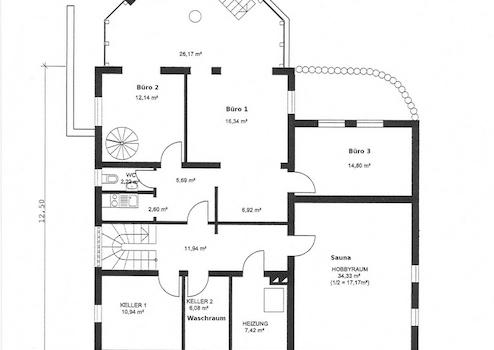 Zusätzlich zu der großzügigen Wohnfläche befinden sich im Untergeschoss mehere gut ausgebaute Räume nutzbar als Büro, Ausstellungs- oder Lagerraum oder für Fitness.