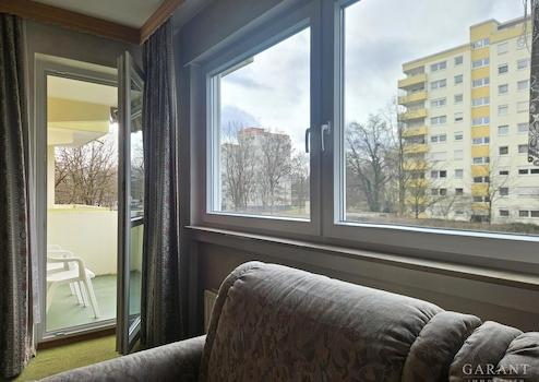 Zwei gut geschnittene Schlafzimmer, ein helles Wohnzimmer mit Zugang zum Westbalkon sowie eine abgetrennte Küche bieten angenehmen Wohnkomfort. Das geräumige Badezimmer verfügt über ausreichend Platz für eine Badewanne oder eine große Dusche sowie für eine Waschmaschine. Zusätzlich steht ein separates WC zur Verfügung.