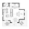 Das elegante Flachdach unterstreicht die klare Architektur, individuelle Planungsoptionen bieten maximale Gestaltungsfreiheit. Als Effizienzhaus 40 ist das Haus förderfähig nach KFN und optional QNG und überzeugt mit moderner Haustechnik inklusive Luft-Wasser-Wärmepumpe und Lüftungsanlage.