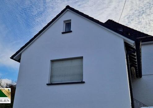 Die Doppelhaushälfte, erbaut im Jahre 1927, und um einen Anbau aus dem Jahr 1965 erweitert, steht auf einem interessant angelegten, ca. 853 m² großen Grundstück und liegt nur 3 Gehminuten vom Zentrum Marienheide entfernt.