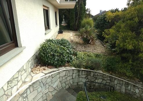 - Blick von Wohn-, Schlafzimmer und Küche in gepflegten Garten in Richtung Westen (Sonne am Nachmittag und Abend)