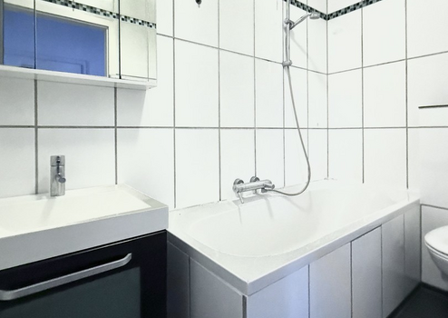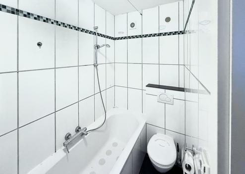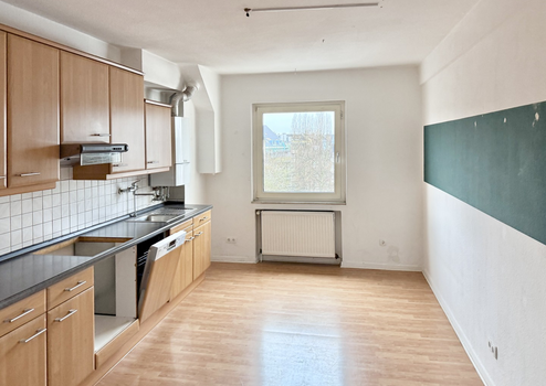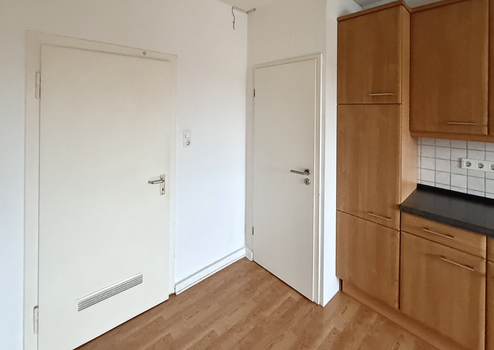 Die Wohnung beeindruckt durch seine geräumige und helle Wohnküche. Eine Abstellkammer ist ebenfalls integriert. Aus dem Fenster blickt man auf einen grünen Innenhof und im Hintergrund den Düsseldorfer Fernsehturm.