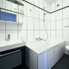 Das weiße, moderne Bad mit großer Dusch- /Badewanne verfügt über eine Fußbodenheizung.