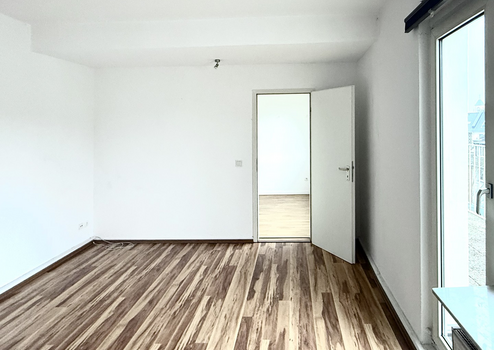 Eine Leichtbauwand zur Trennung von Wohn- und Schlafzimmer kann verändert werden, falls eine andere Raumaufteilung gewünscht ist.